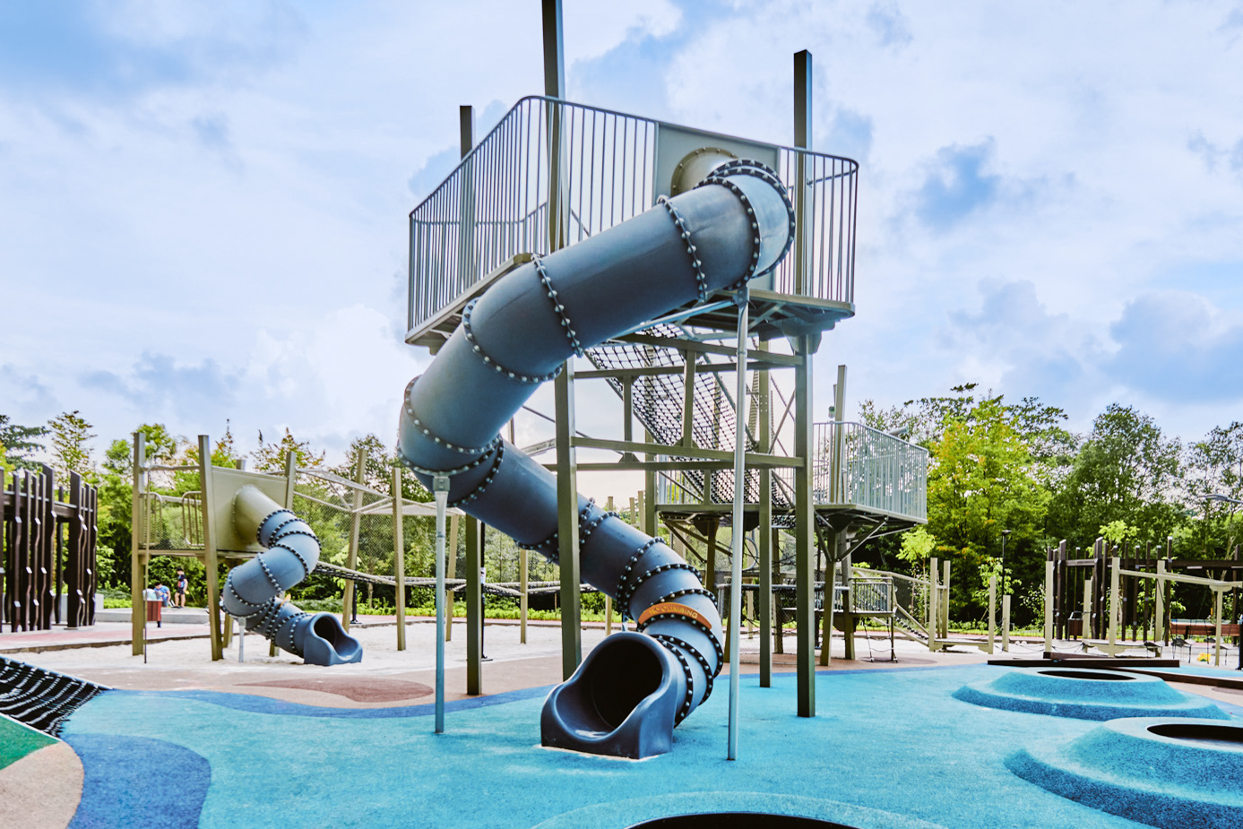 The Big Play Tower stands as the centerpiece of adventure, offering children elevated exploration and thrilling play experiences. Acting as a perch above the playground, it combines challenge, excitement, and opportunities for group interaction.
