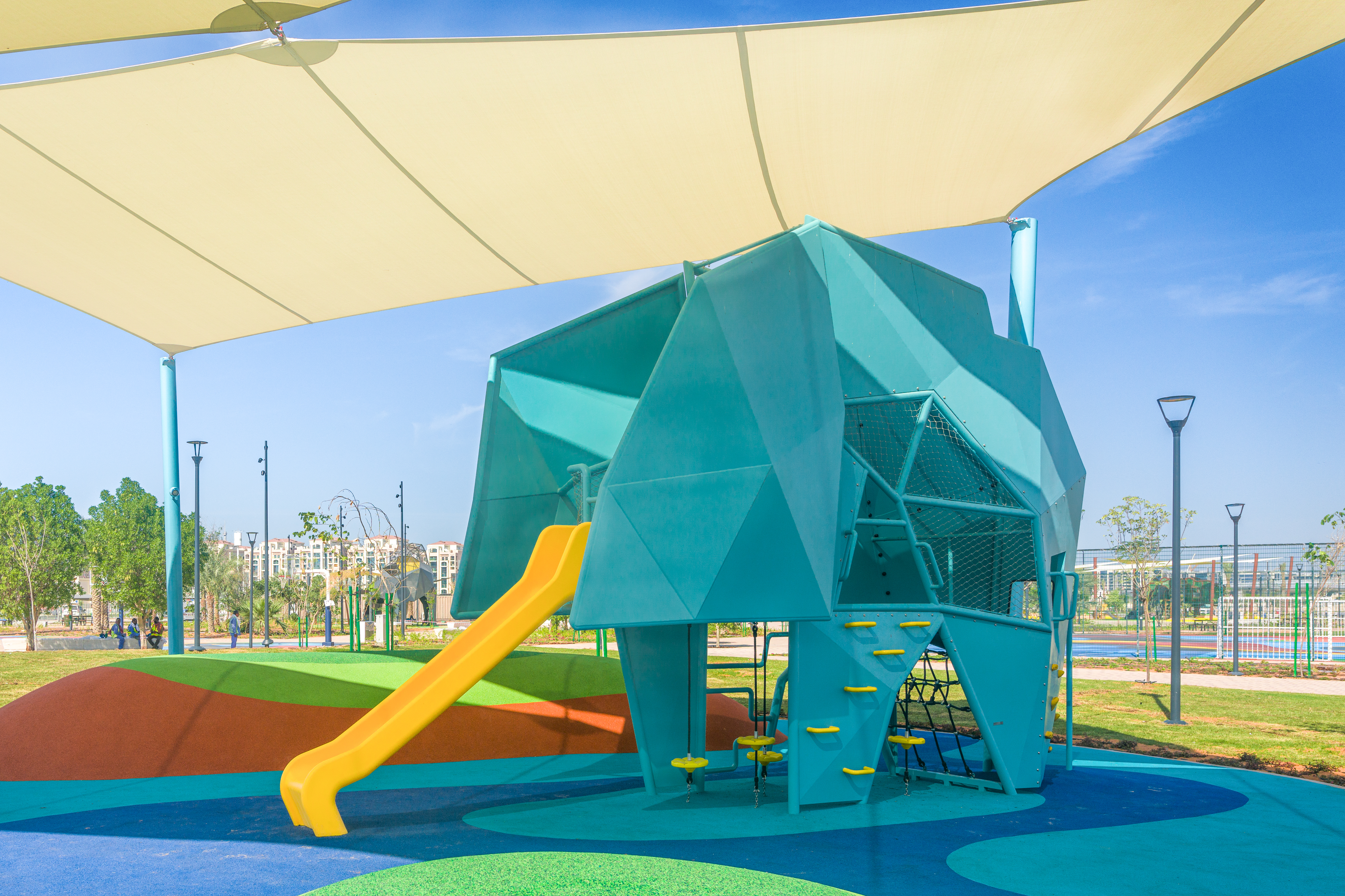 The origami Elephant is a gigantic play structure with lots of play elements in its body. The iconic trunk serves as a long and exhilarating slide. This play structure is made up of challenging activities and obstacles, helping children to develop their physical abilities and cognitive skills through play.