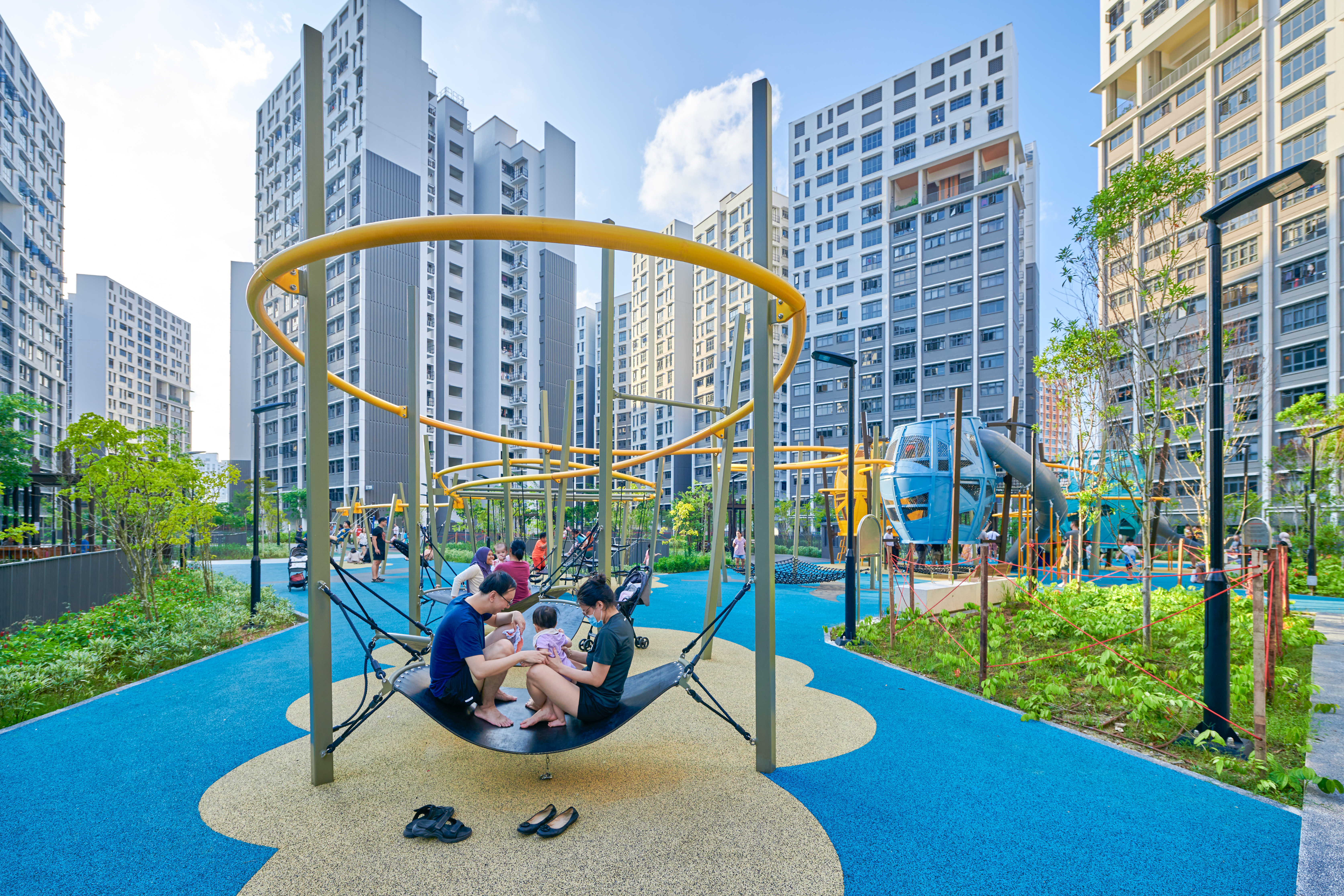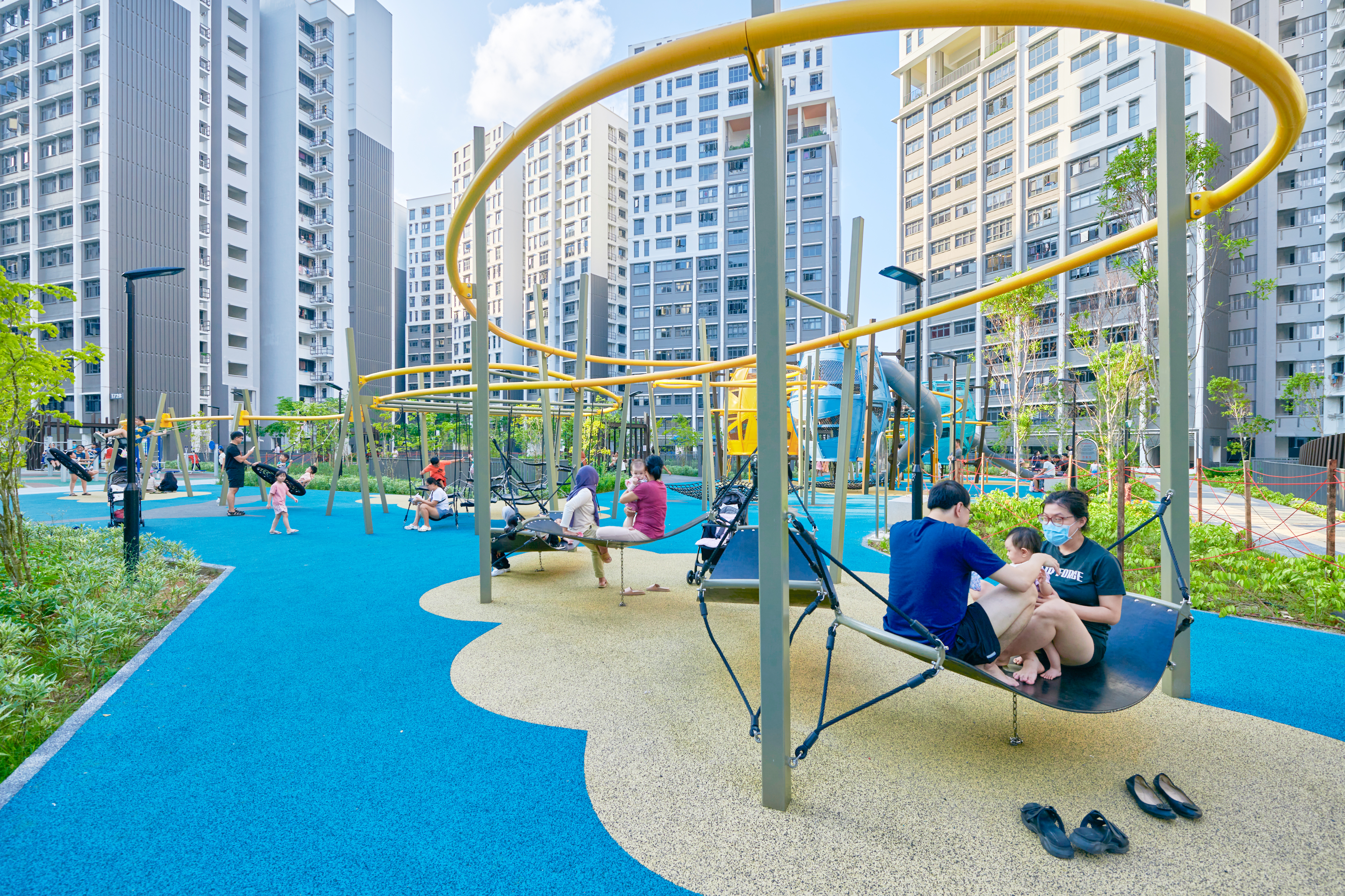 As families enter the playscape, their eyes are drawn to the gentle sway of the hammock, beckoning them with its promise of relaxation and rejuvenation.