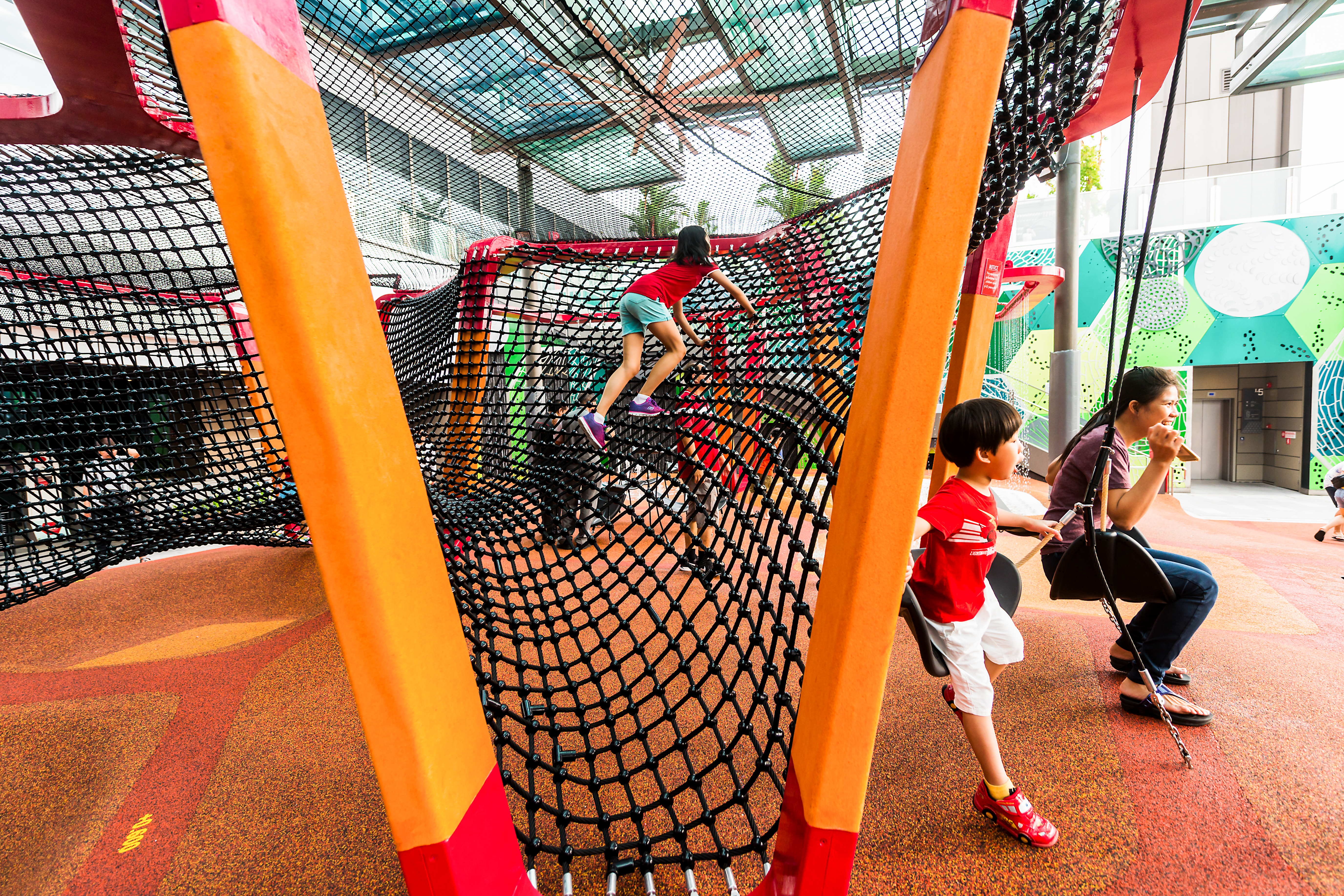 Along the Hex is the rope net that surrounds it like a canvas. The kids can either climb or walk on the nets for their preferred play conditions.