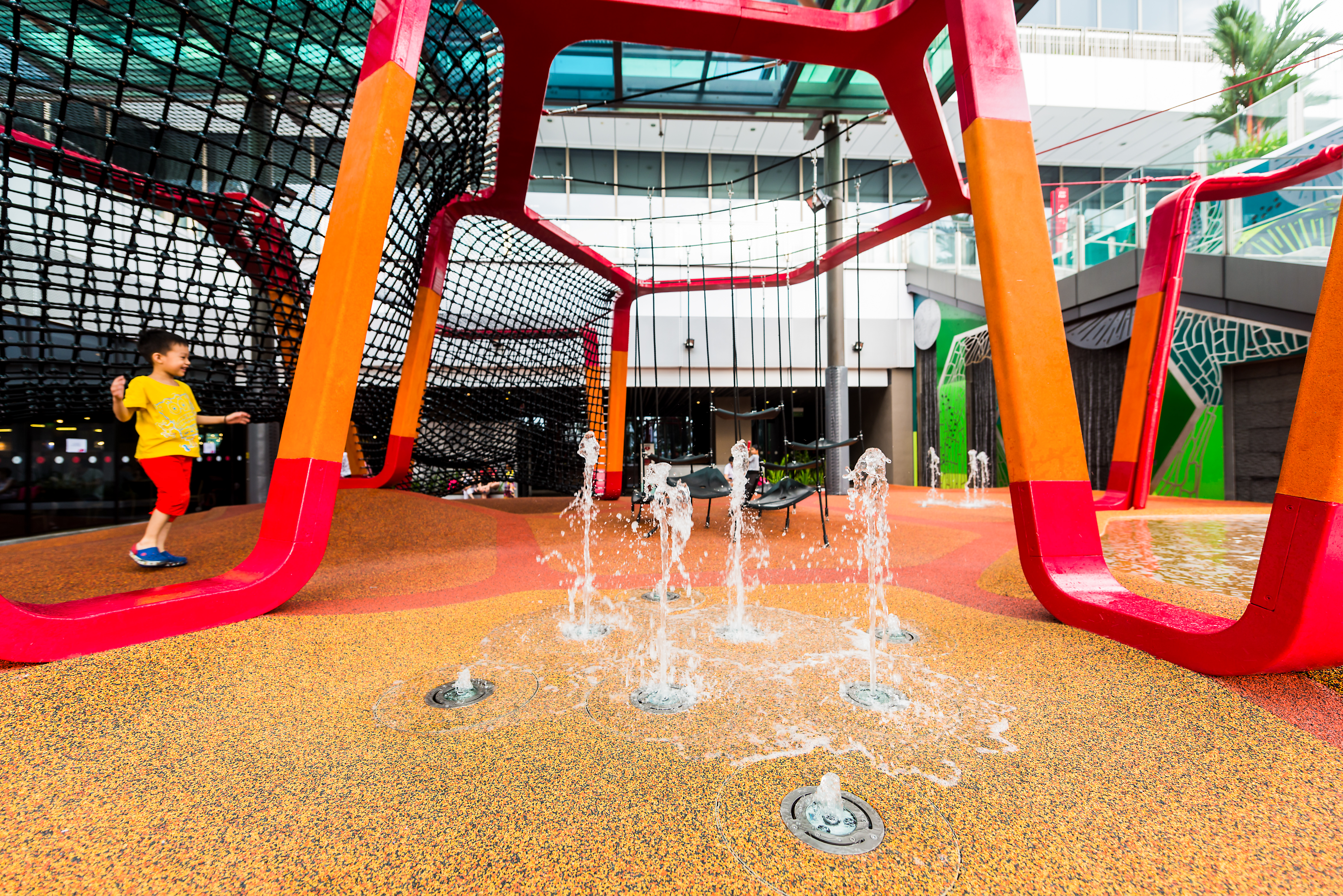 One of the Hex’s sections that are allocated for water play. The water drizzles down like a water curtain for the children to get drenched while having fun.