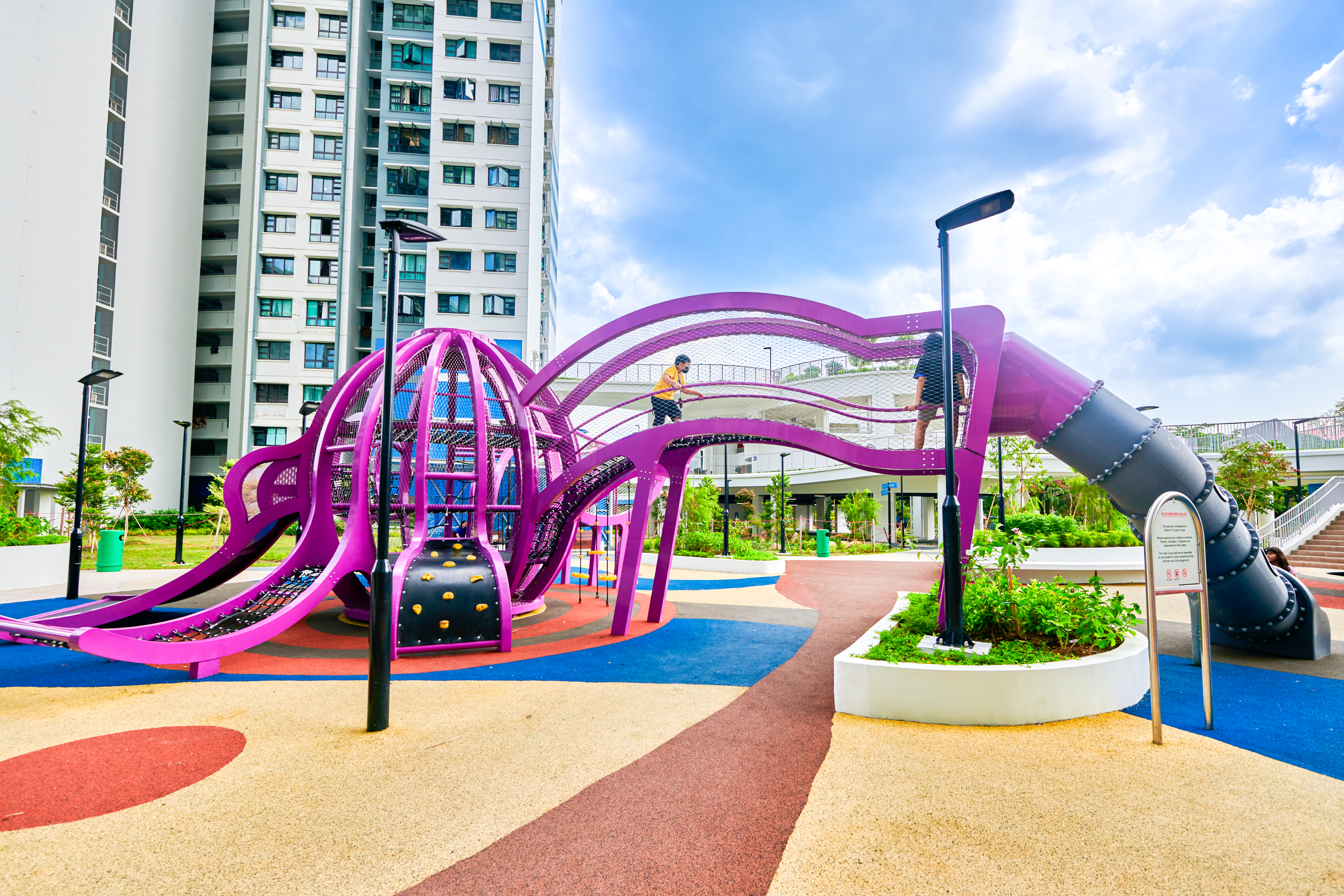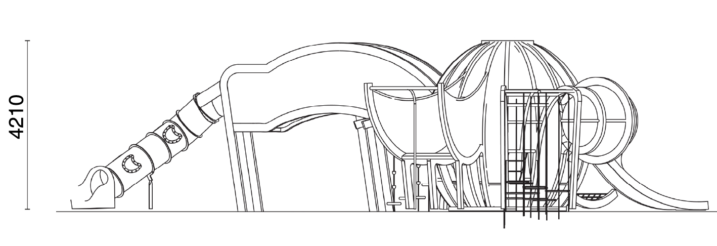 A winding tube slide shaped after an octopus tentacle, giving kids a fast, exciting ride through its fun curves.