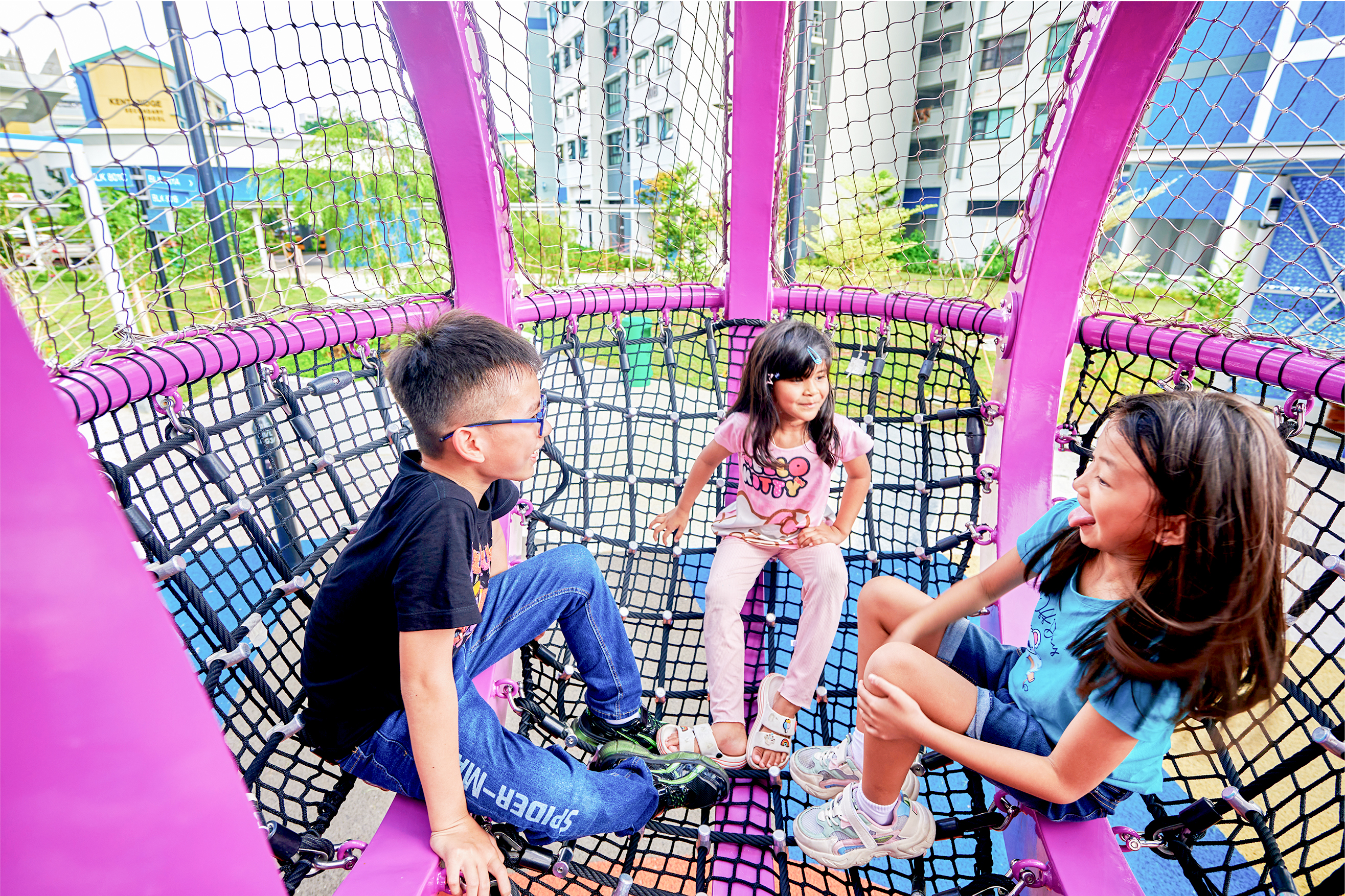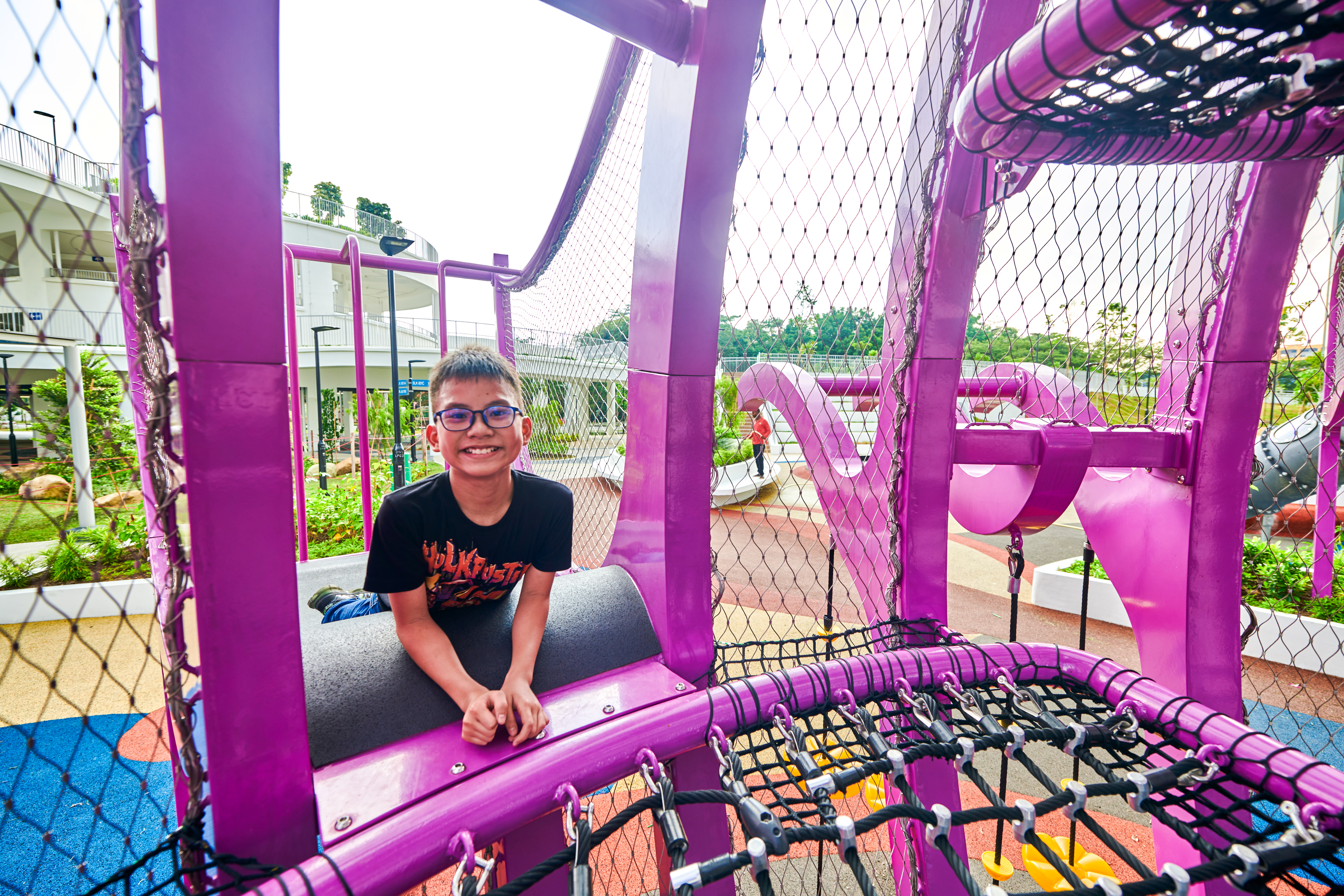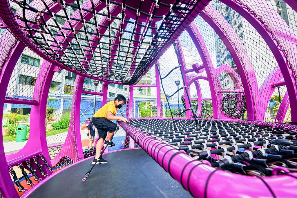 A rubber membrane slope that works as both a gentle climber and a smooth slide, offering versatile play in one feature.