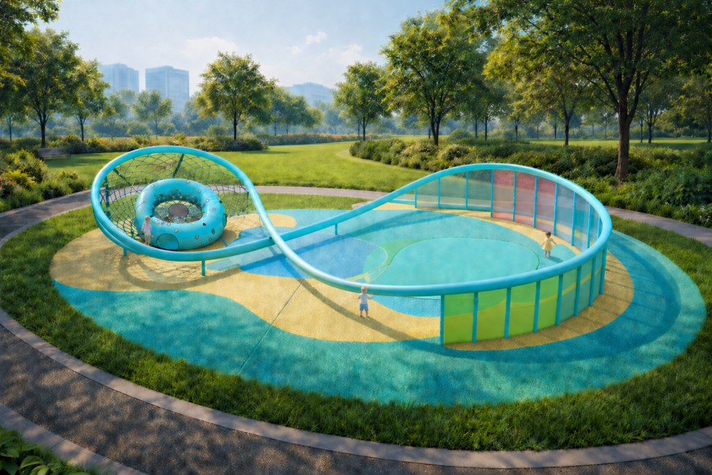 Inspired by flowing water and the natural motion of waves, Whoosh mimics the smooth, meandering lines found in streams and currents. Just like water carving paths through nature, the structure encourages children to explore flexible routes and fluid movements in play.